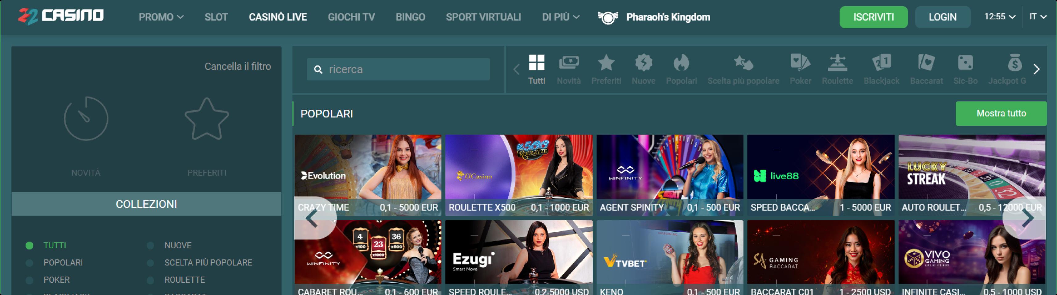 2Cerca “22Casino Italia”.
